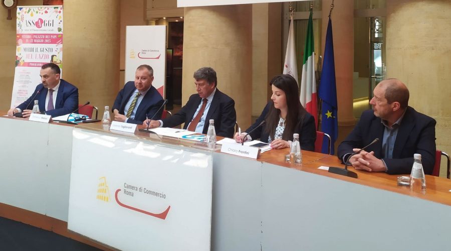 E’ stata presentata oggi alla Sala del Tempio di Vibia Sabina e Adriano a Roma, in Piazza di Pietra, la seconda edizione di Assaggi, il salone dell'enogastronomia laziale in programma a Viterbo dal 19 al 22 maggio 2023. Una manifestazione organizzata dalla Camera di Commercio di Rieti-Viterbo in collaborazione con la Camera di Commercio di Roma e il Comune di Viterbo, con il patrocinio della Regione Lazio e la partnership di Slow Food Lazio che punta a valorizzare e promuovere il ricco e variegato patrimonio agroalimentare della regione. Ad intervenire durante l’evento, moderato dal Segretario della Camera di Commercio di Rieti-Viterbo, Francesco Monzillo, il presidente della Camera di Commercio di Roma, Lorenzo Tagliavanti, il presidente della Camera di Commercio di Rieti-Viterbo, Domenico Merlani, la sindaca di Viterbo, Chiara Frontini, l'assessore allo Sviluppo Economico Locale e Turismo del Comune di Viterbo, Silvio Franco, il direttore generale di Agro Camera, Carlo Hausmann, il presidente di Slow Food Lazio, Luigi Pagliaro, la vice presidente di Slow Food Roma e delegata Slow Food Lazio per l'educazione alimentare, Francesca Rocchi, e Carlo Zucchetti, l'enogastronomo con il cappello.